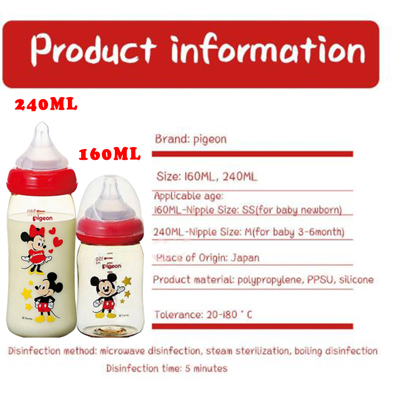 ️ 【WADLY1314】PIGEON Wide Neck milk bottle PPSU Bottle botol susu With Peristaltic Nipple ( Mickey )-Ready Stock(160ml/5oz,240ml/8oz)
