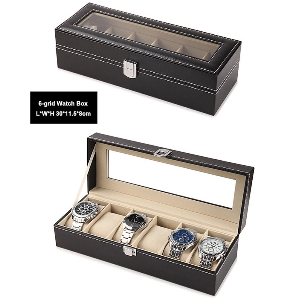 ?CHEAPEST!!!? Watch Box Storage Case - PU Leather Accessories Glass Top Jewelry Organizer 6 10 12 20 Slots Watchbox