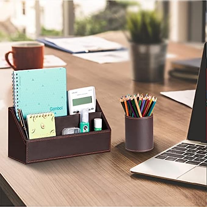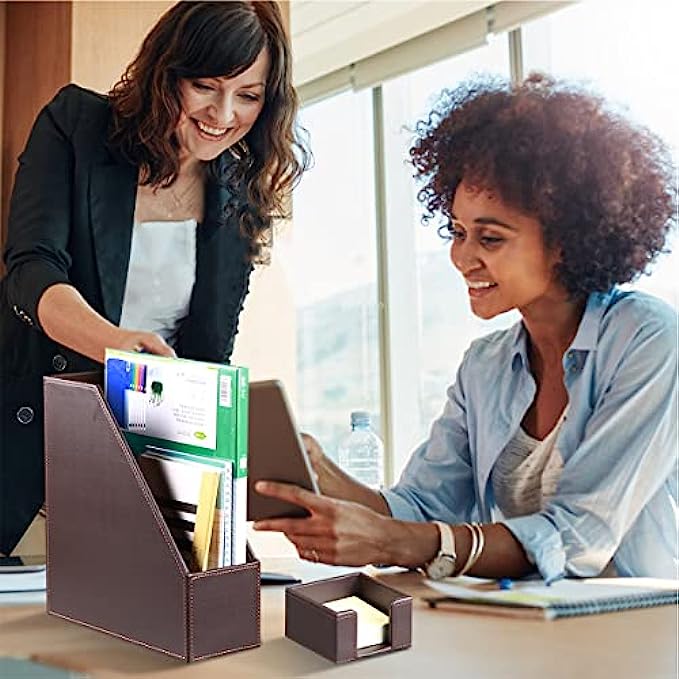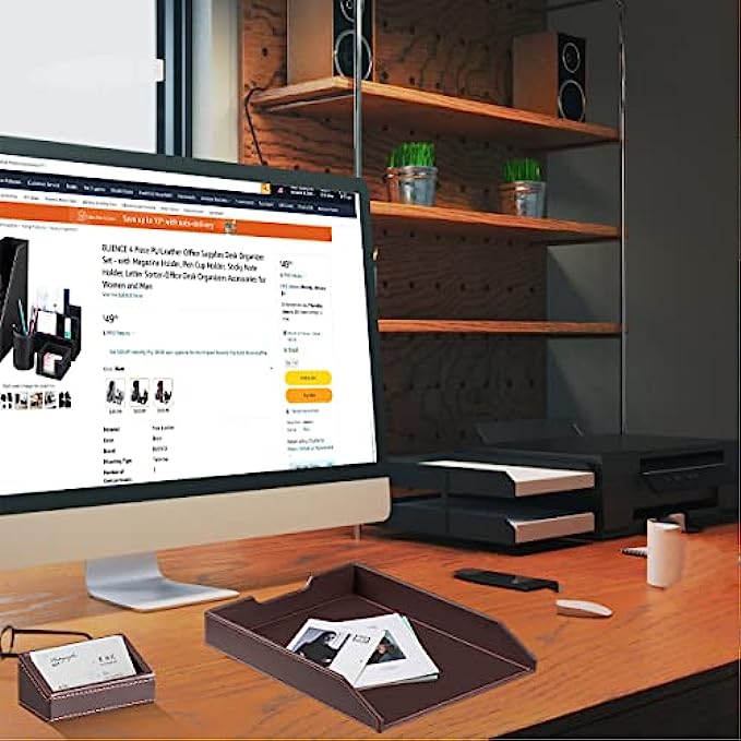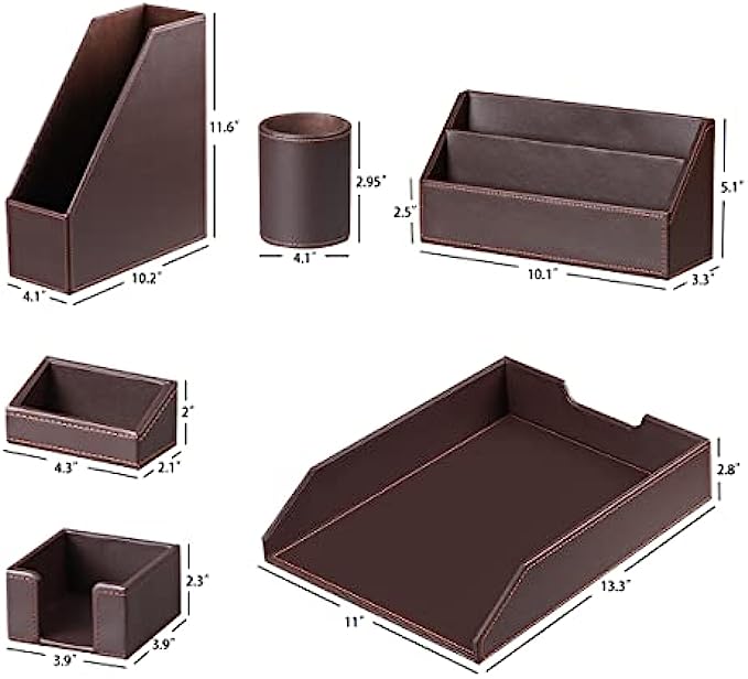 6 Piece Office Supplies Desk Organizer Set - with File Paper Tray, Magazine Holder, Pen Cup, Sticky Note Holder, Letter Mail Sorter, Business Card Holder- Desktop Accessories Decor for Women Men