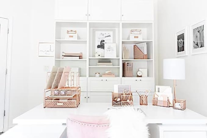 • ORGANIZES IN STYLE: With this rose gold desk organizers and storage ,stationery organizer, you do not need to compromise style for organization. Use desk file holder on your desk to hold all your important documents, files and papers while also being stylish with any decor.