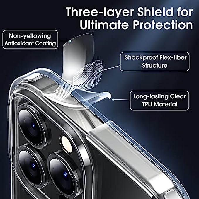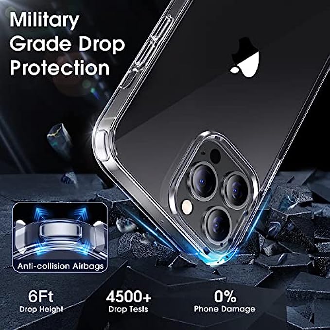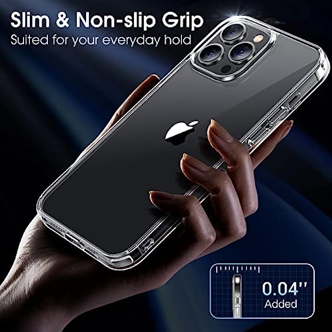 [Crystal Clear & Never Yellow]: Using high-grade Bayer's ultra-clear TPU and PC material, allowing you to admire the original sublime beauty for iPhone 13 Pro Max while won't get oily when used. "Never yellow" thanks to the nano-grade diamond anti-oxidation coating which can effectively resist 99.9% of yellowing caused by ultraviolet rays and sweat.