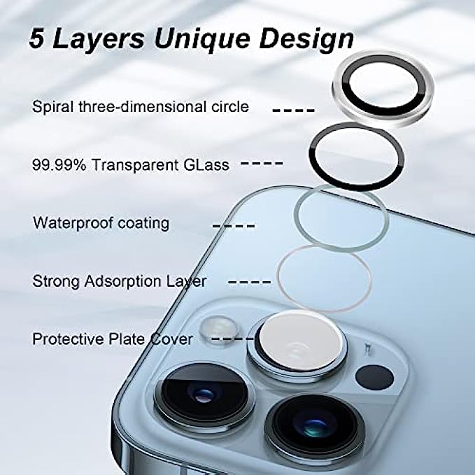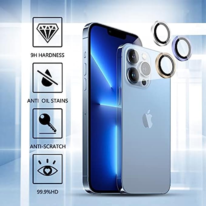 [Compatible With iPhone 13 Pro & iPhone 13 Pro Max] Our Camera lens protector for iPhone 13 Pro Max (6.7 inch) /iPhone 13 Pro (6.1 inch),NOT for iPhone 13 mini 5.4 inch / iPhone 13 6.1 inch. [10S Installation] You don't need to install them one by one.Our camera lens cover for iphone 13 pro is very esay to install,Just remove the camera lens glass film,align with the hole, place and press them on the camera screen.No fingerprint,No bubbles and leaves no residue when removed. [Alloy Material] Our camera lens screen protector 13 pro max is made by premium aviation aluminum and 9H tempered glass.The lens protector is only 0.03mm thickness,Precision cutting of alloy materials and tempered glass perfectly compatible with iPhone 13/iPhone 13 Pro Max camera lens. [Anti-Scratch/Water/Dust] Anti-Scratch/Water/Dust full coverage protection, protect camera lens from daily life.13 pro max camera protector covers the whole lens to the bottom, as an essential tool, to keep every inch of your iPhone 13 Pro Max protected completely. [Highly Durable] This camera lens for iphone 13 pro max made of 9H Tempered Glass offers enough protection the phone camera from highly impact, scratched.