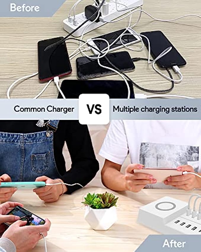 • Suitable for Any Occasion - The charging station can be used to charge devices in bedrooms, living rooms, kitchen counters, offices, conference rooms, dining rooms, classrooms, hotels and more. The charging station has a compact design for easy travel.
