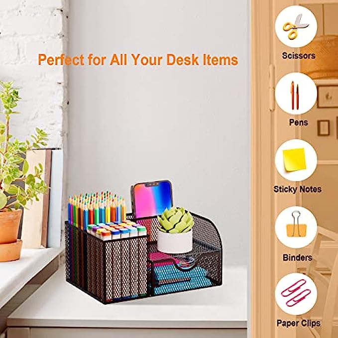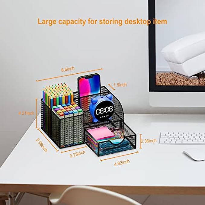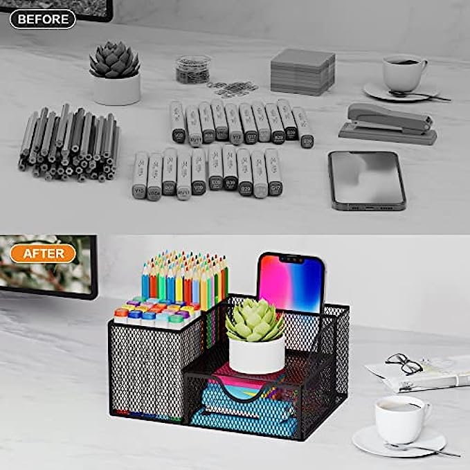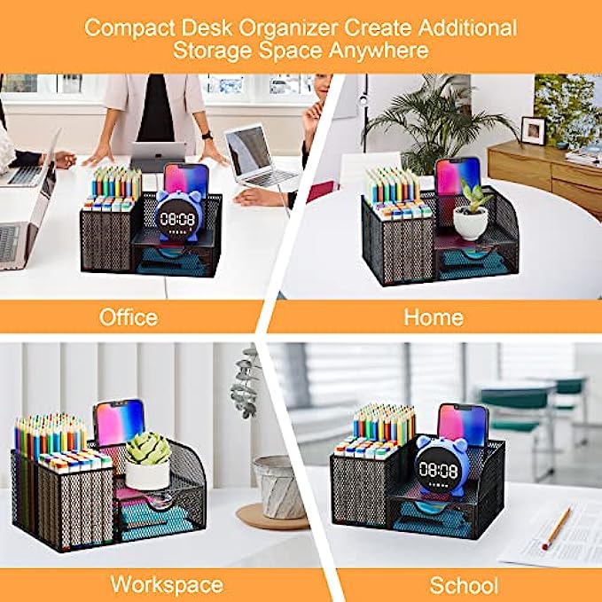 • SAVE DESK SPACE: one suitable desk organzier can help to save desk space, it is useful to separate and organize all your stationeryas per usage, you can quickly locate important items when you need it