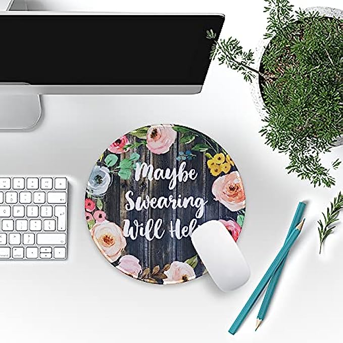Eleville Mouse Pad Fashion Funny Wording Maybe Swearing Will Help Words of Wisdom Keep Calm Lycra Cloth Top and Non-Slip Base for Office Home Travel emp8
