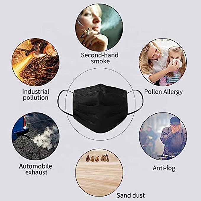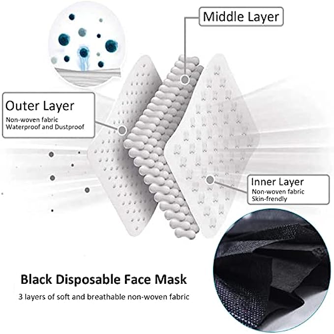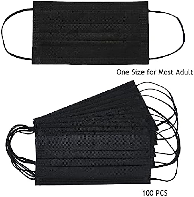 Face Mask 100PCS Adult Black Disposable Masks 3-Layer Filter Protection Breathable Dust Masks with Elastic Ear Loop for Men Women