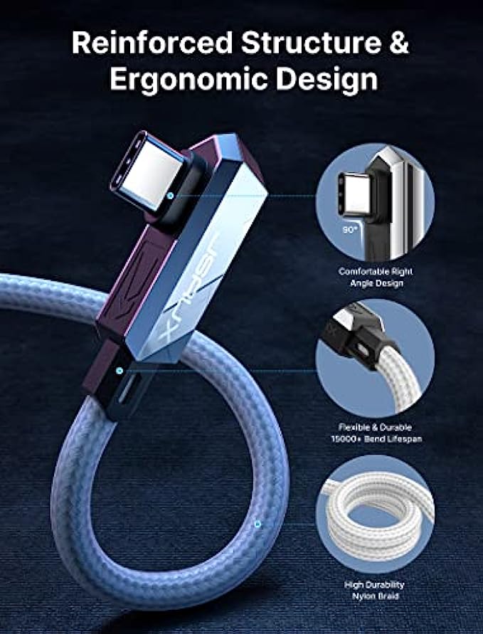 • User Friendly Design: The Type C port with an L shaped design is comfortable to use with your Quest VR headset. The attached velcro strap fixes the cable and Quest to prevent disconnection during movement.