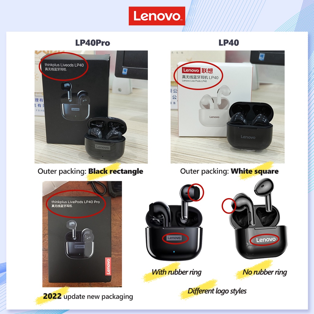 Lenovo LP40 Pro LP40 True wireless Earphone Bluetooth 5.0 Low latency TWS HD Music With Microphone IPX5