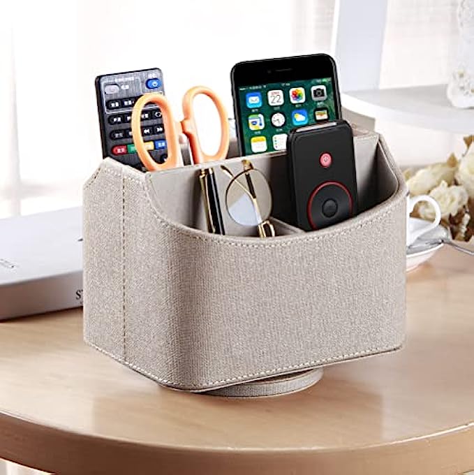 • 360°ROTATABLE REMOTE CADDY: our remote control storage comes with an easy-to-spin 360° rotating base, providing you easy access to put or take items, whether you place it on the couch, armchair,table, or anywhere around your house or apartment;