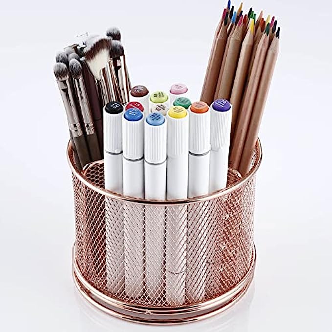 • ✅【360 DEGREE REVOLVING DESIGN】As office supplies storage and pen and pencil organizer. You can use it for storage supplies such as pens, pencils, markers, clips, scissors, art supplies, remote controls, brushes,painting pen,cosmetic eyebrow pencil etc. The pen holder spins smoothly. You can always get what you want quickly and easily.