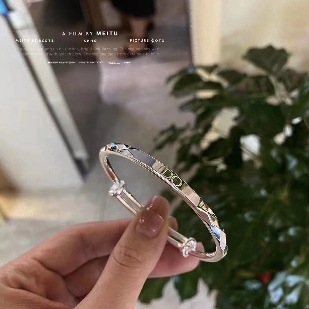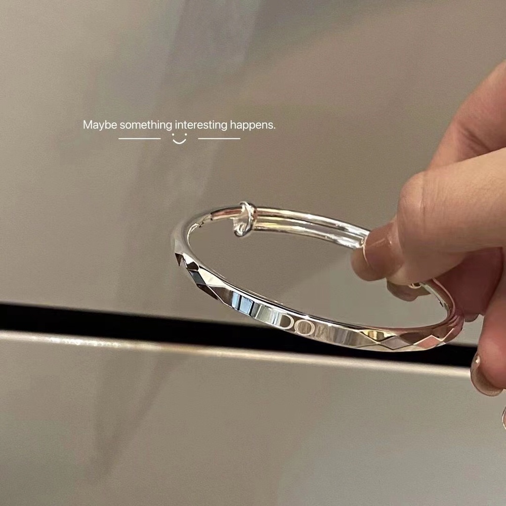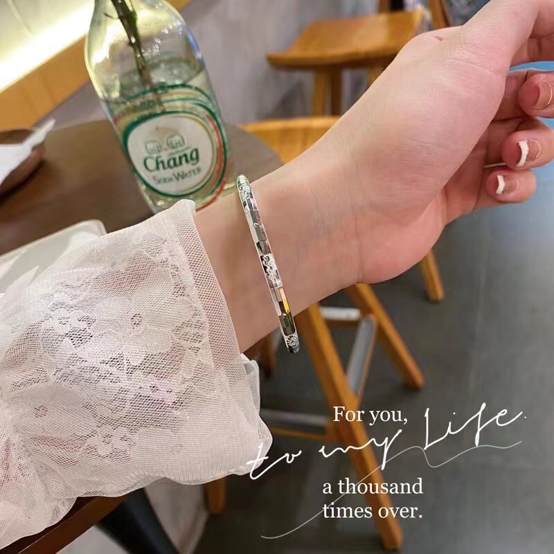 Round Stick Laser IDO Sliding Pull Bracelet Pure Silver 999 Shiny Surface