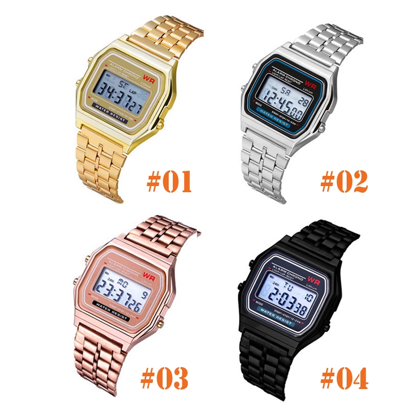 SS Elegant Mens Womens Retro Stainless Steel LCD Digital Sports Stopwatch Watch