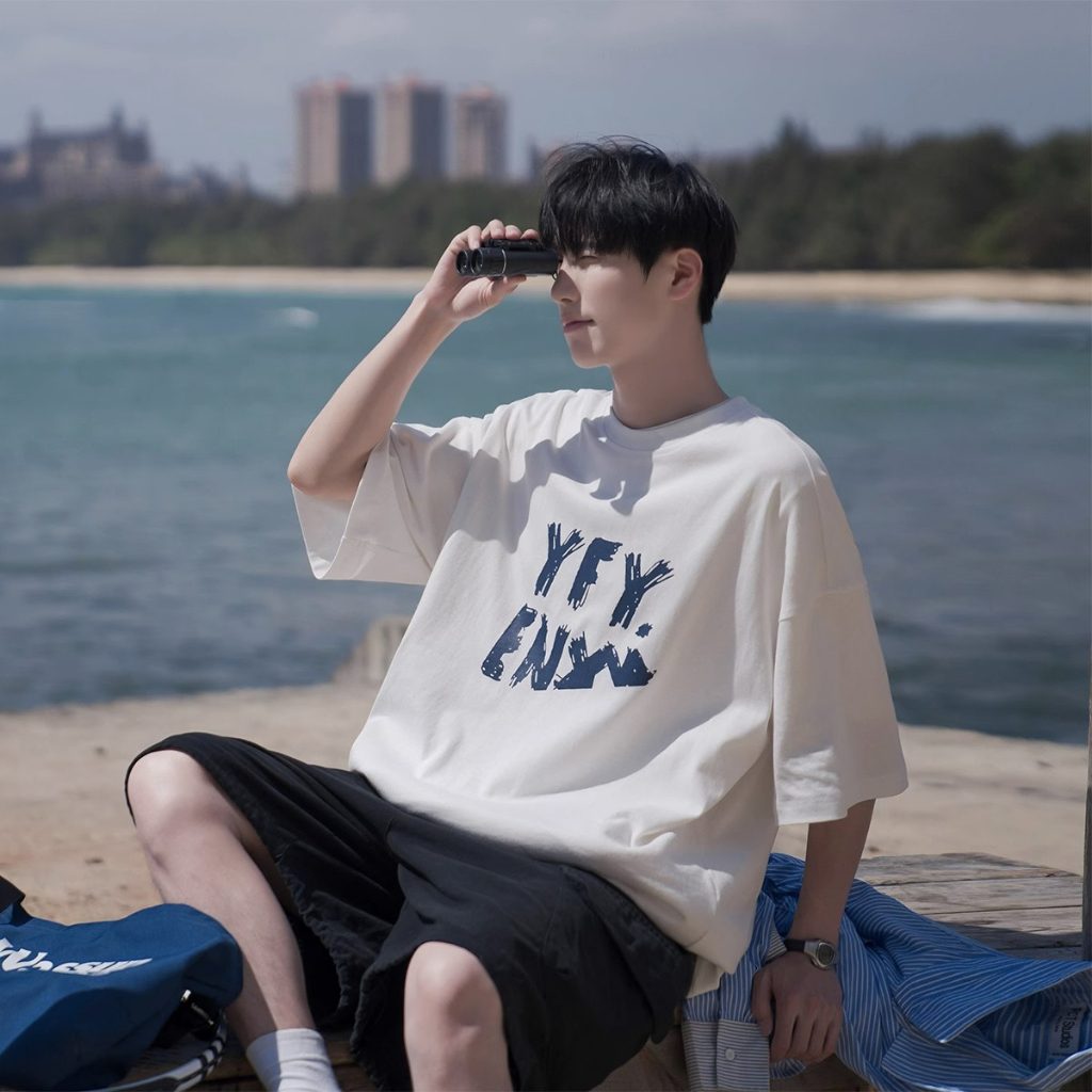 Zaer 短袖t恤 下半身失蹤 美式復古短踢 男女同款 大尺碼oversize 上衣 字母印花 夏季寬鬆落肩休閒 高街