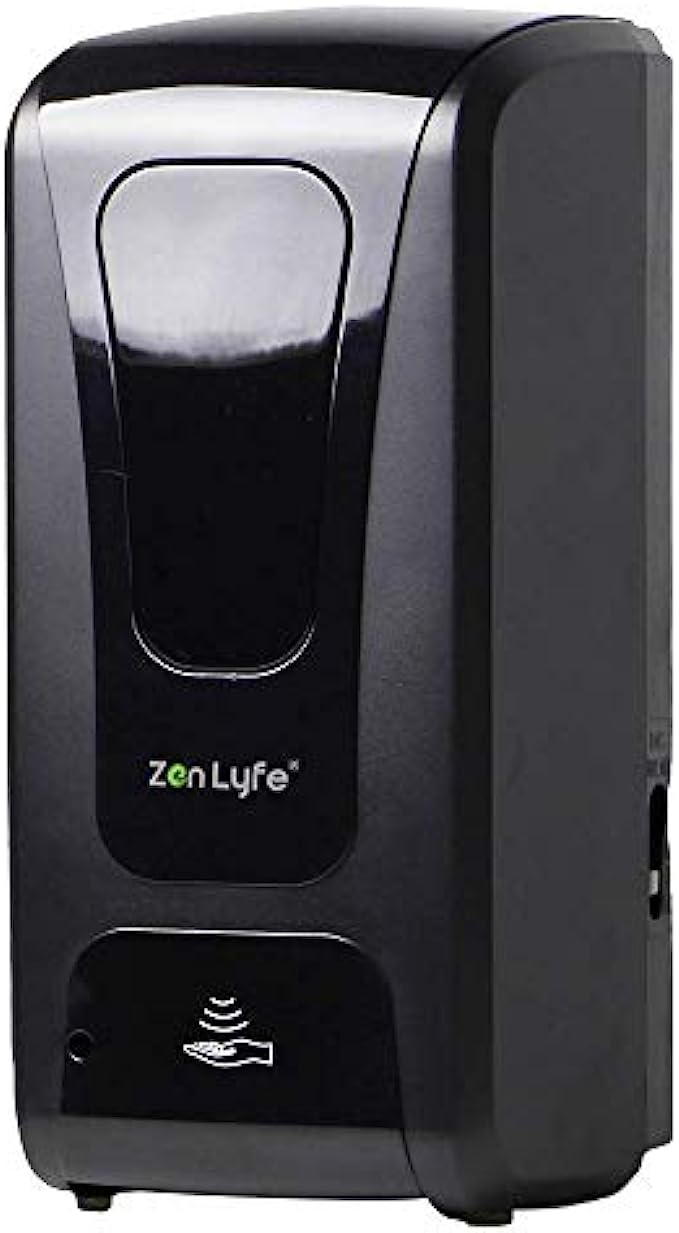 Zen Lyfe Automatic Hand Sanitizer Dispenser with Stand, Hand Sanitizer Stand Station for Churches Schools Offices Restaurants - Includes Drip Catcher and Refillable Bottle, Black