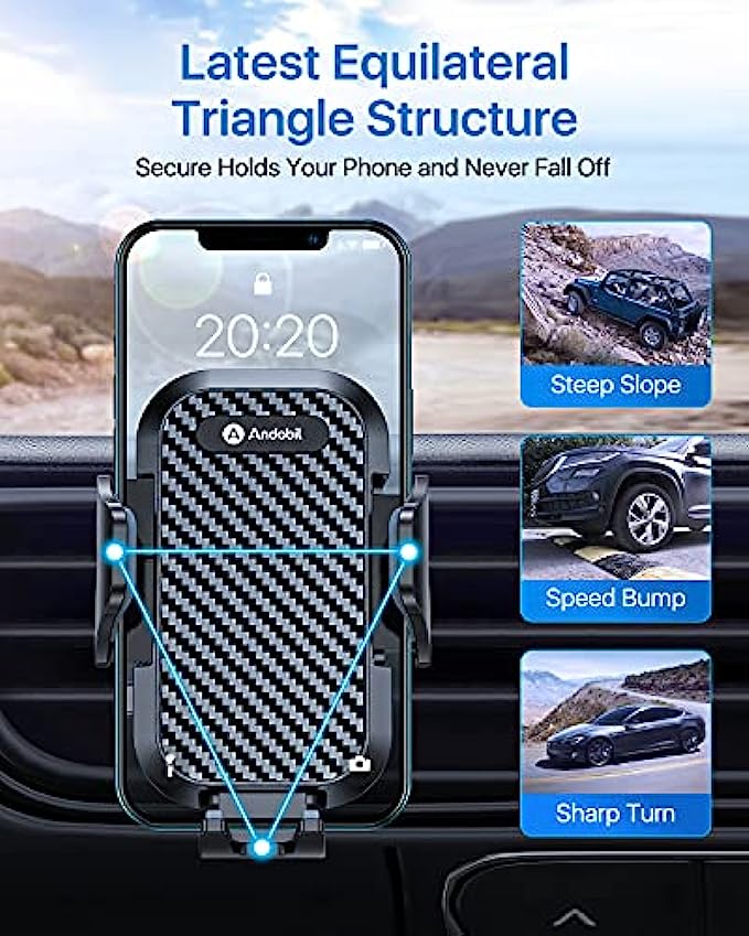 • [One Handed Operation & Drive without Distracting] Andobil design engineers upgraded the switch button, which not only made it easier to press it, but also made it quick to open the arm for only 0.1S. Mount or remove your phone in seconds with the patented Easy Clamp. - Easy to Use