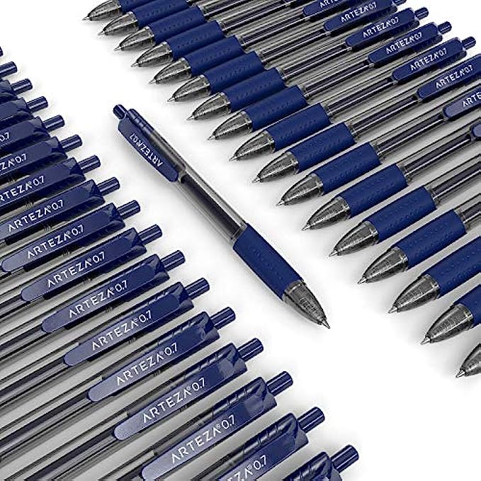 Arteza Gel Pens, Set of 50 Blue Roller Ball Bullet Journal Pens, Quick-Drying Ink, Fine Point, Office Supplies for Writing, Taking Notes & Sketching