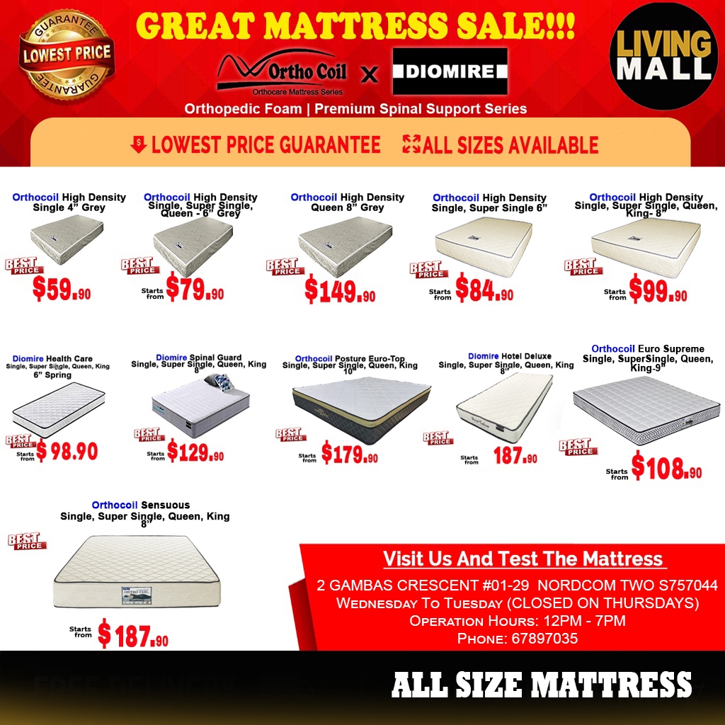 180 Living Mall - All Size Mattress Available - FREE Delivery Available