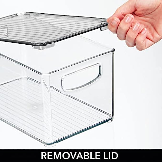 • HANDLES: Bins feature easy-carry, built-in handles to make it simple to transport goods from shelf to cabinet or desktop; Just grab and go; The perfect storage and organizing solution for modern living spaces; Removable lids keep contents protected and dust-free; Use these convenient storage bins to keep children's crafting items all in one place; Great for school supplies, too; Perfect for home or commercial workspaces