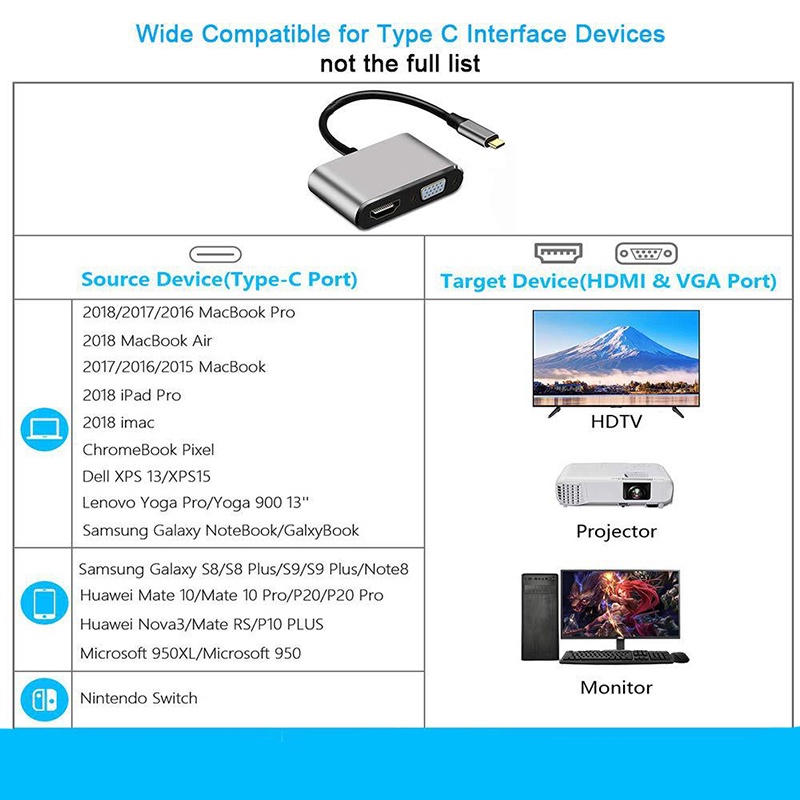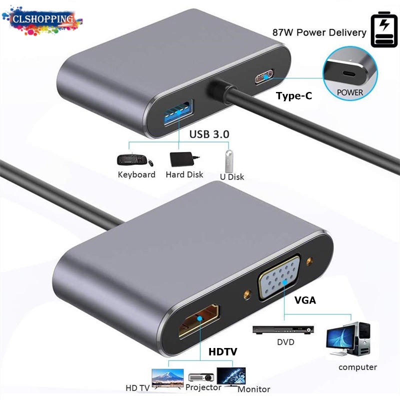 4 in 1 USB Type C to HDMI/VGA/USB 3.0/PD Charging 4K 60HZ Multiport Hub USB C OTG Adapter Converter for Macbook Pro/Air /ipad/mate 30 40 50 60/s22 ultra s23